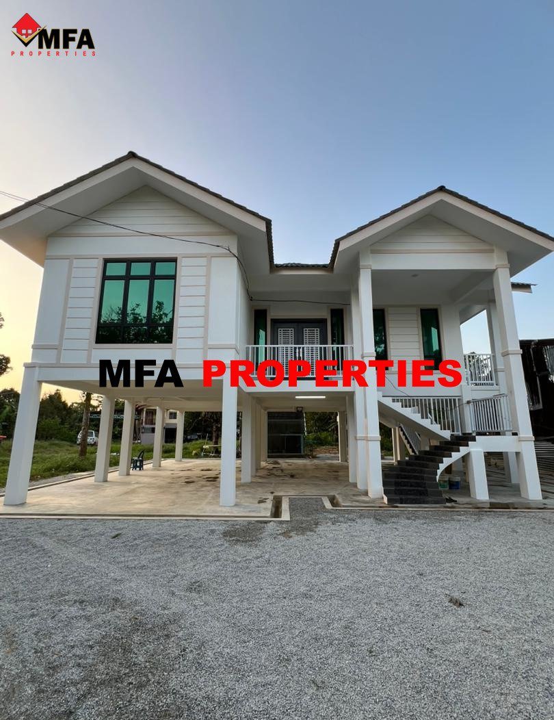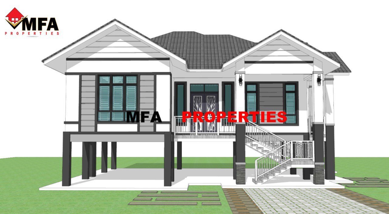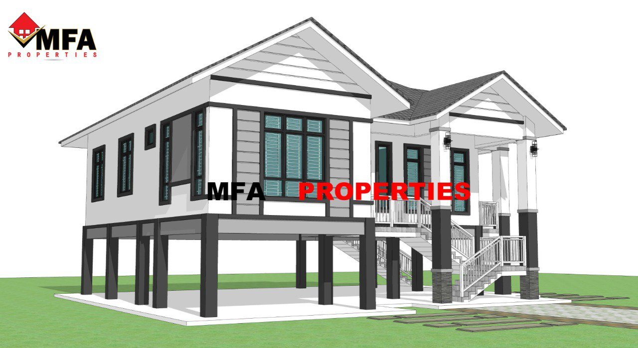 Ini adalah rumah yang telah siap dibina sepenuhnya milik En iaitu rumah 1 tingkat di Limbat, Kelantan. Rumah ini direka dengan konsep banglo bertiang moden yang kukuh dan praktikal, sesuai untuk kawasan rendah serta menyediakan ruang tambahan di bahagian bawah sebagai parkir atau ruang serbaguna. Gabungan warna putih, kelabu dan hitam menampilkan rekaan yang kemas dan moden, dilengkapi bumbung berlapis, tangga hadapan berrailing besi serta tingkap besar untuk pencahayaan dan pengudaraan yang optimum, menjadikannya kediaman yang selesa dan bergaya untuk seisi keluarga.